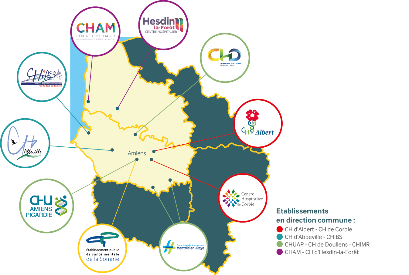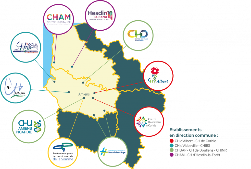Le GHT « Somme Littoral Sud » réunit 10 établissements publics de santé implantés dans un territoire de plus de 700 000 habitants. D’une capacité d’accueil de plus de 5 900 lits et places, il est animé par 13 000 professionnels.